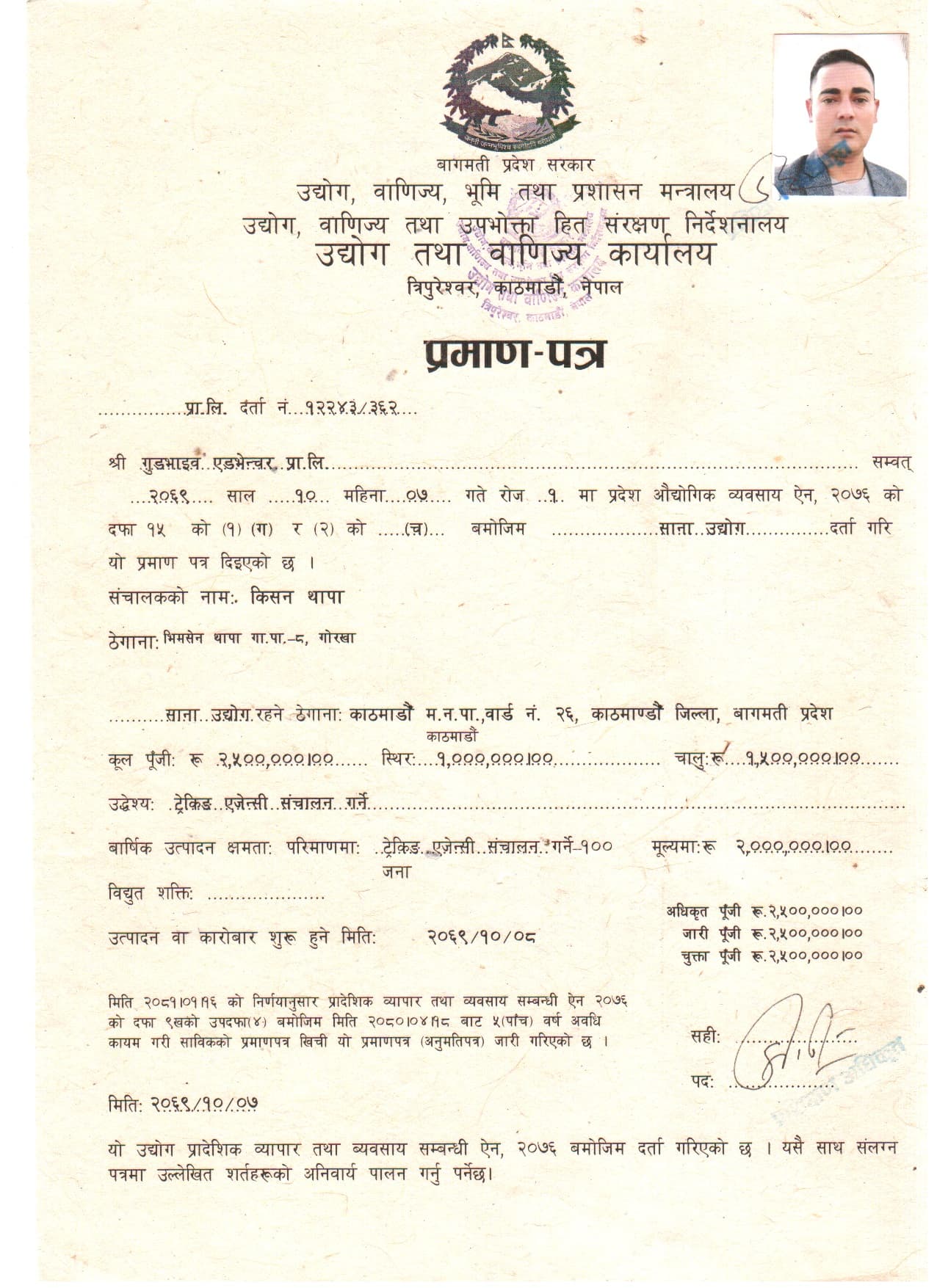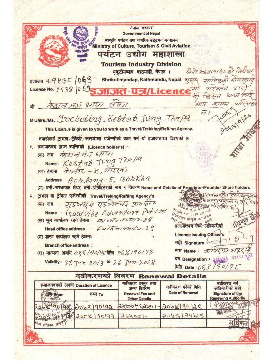 Certificate of Tourism Industry Division