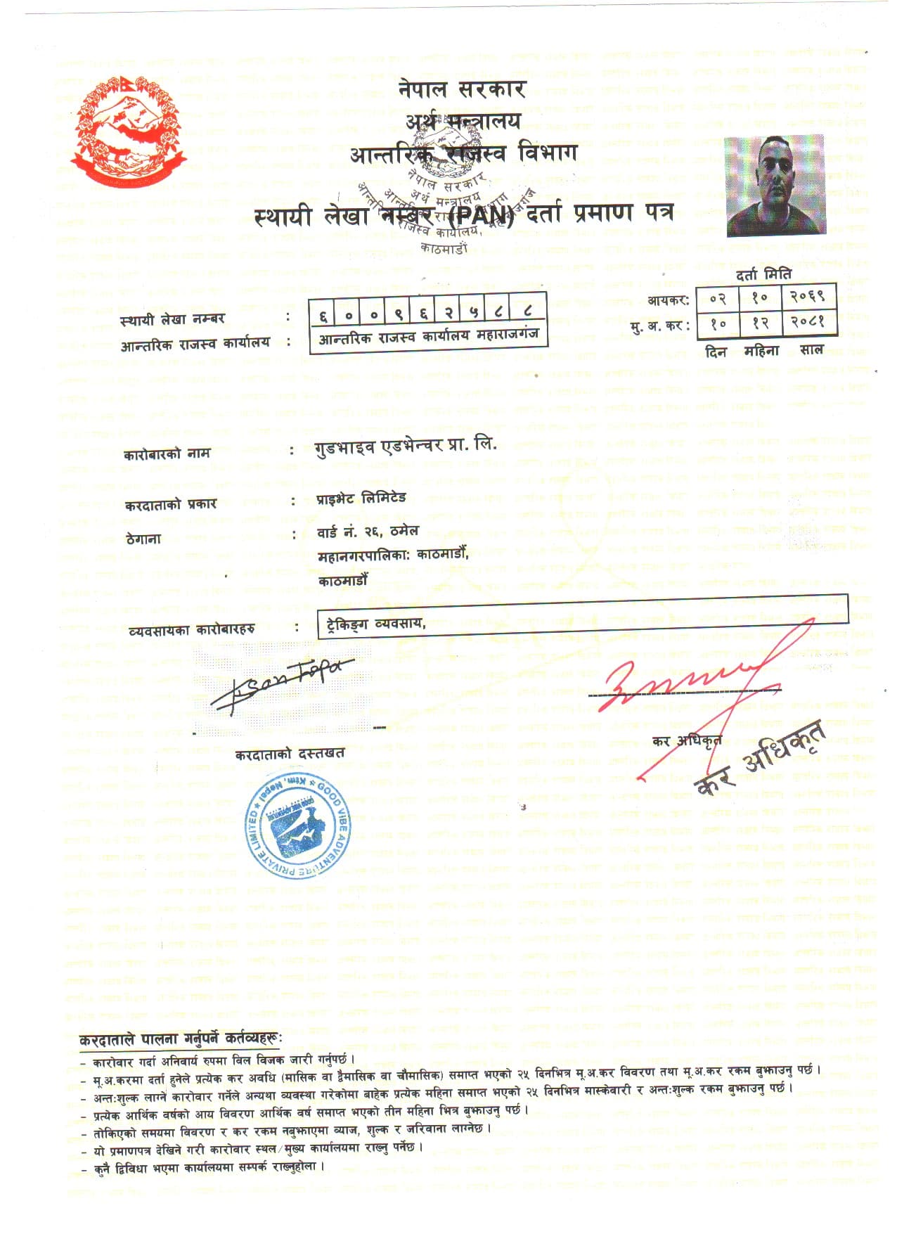 PAN Certificate