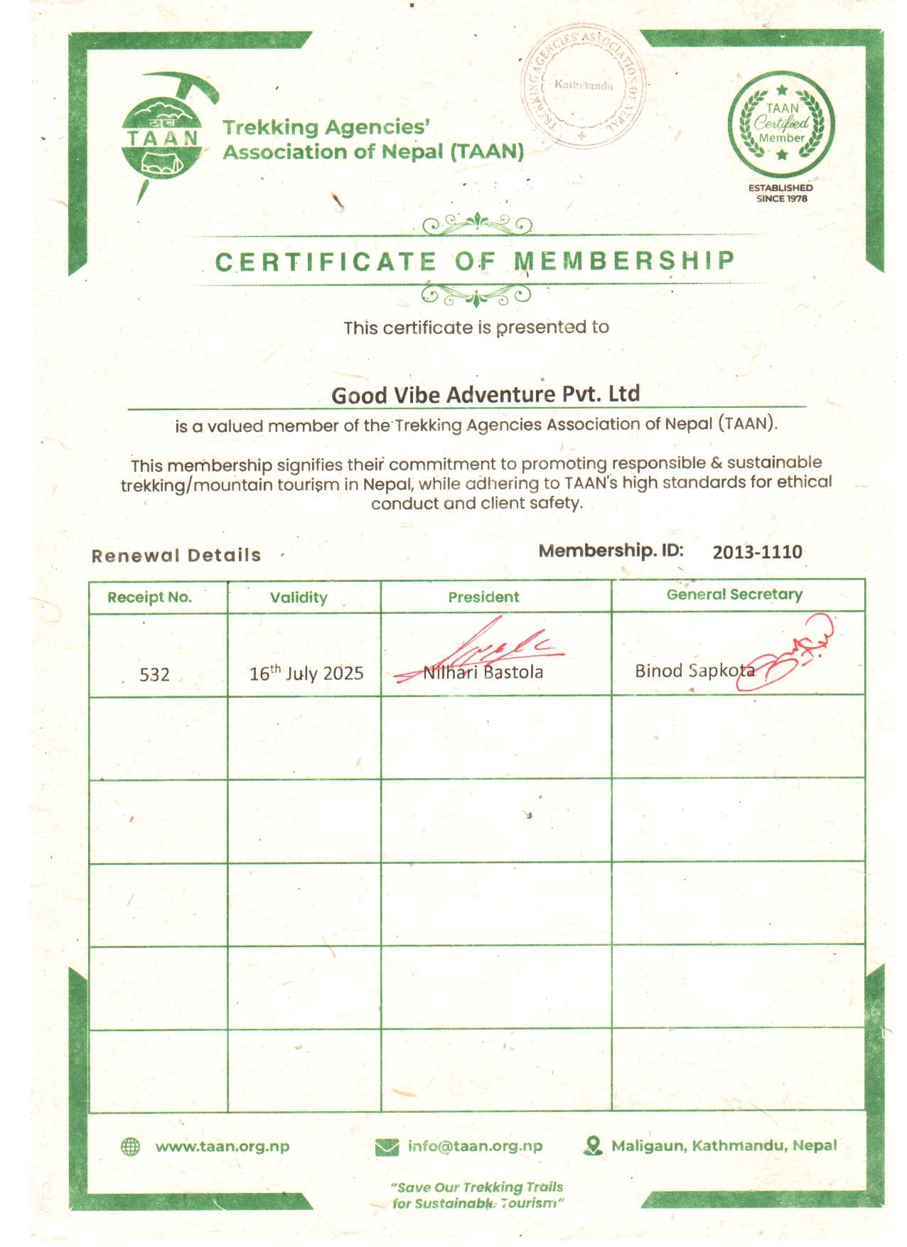 TAAN Certificate