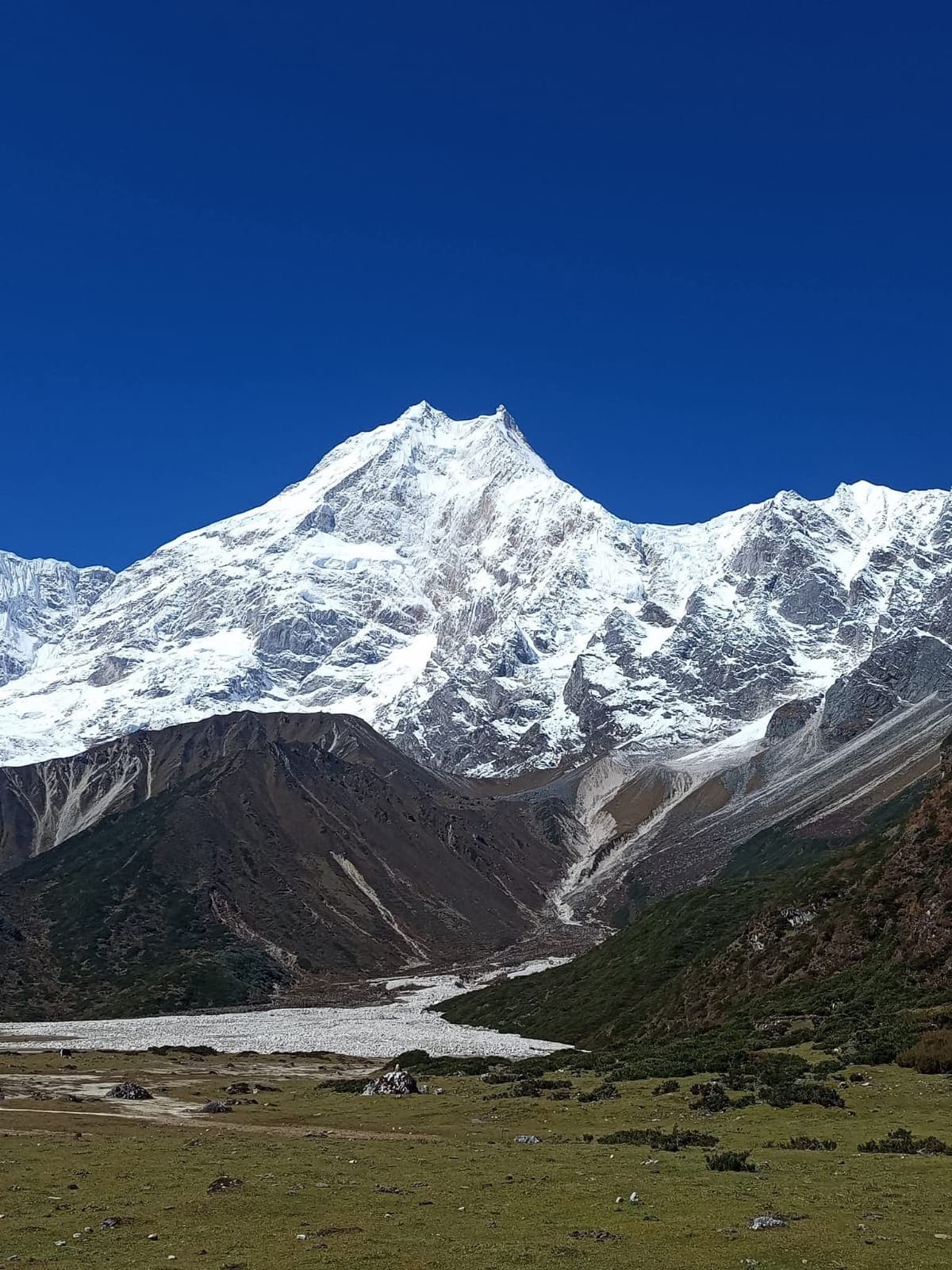 A high-altitude village with stunning views of Larkya La Pass and the surrounding peaks. |